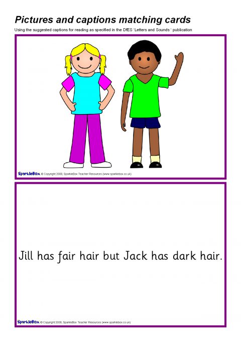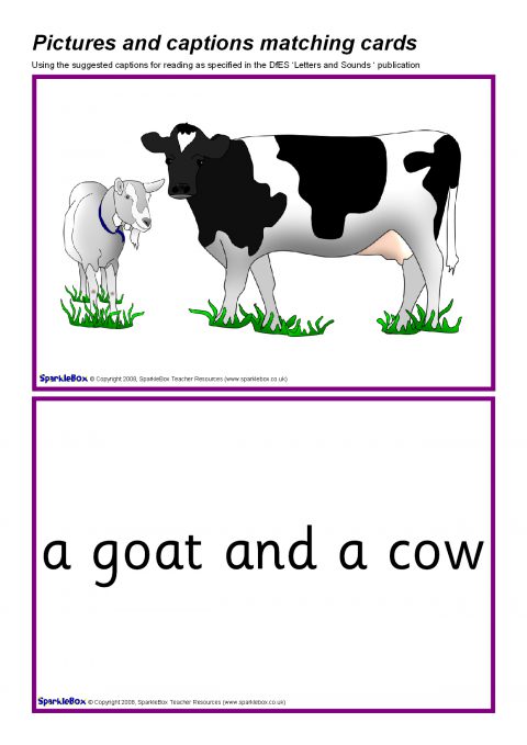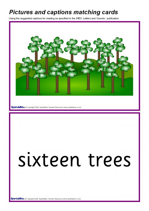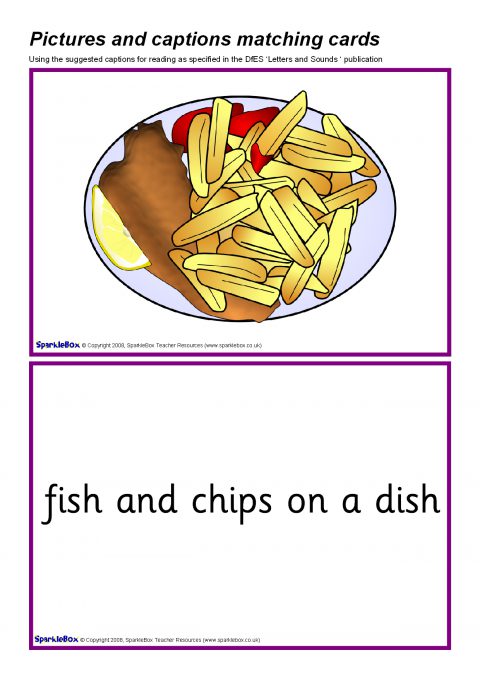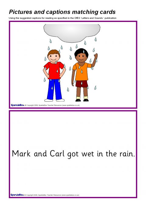 A set of 21 printable cards showing pictures and accompanying captions (as outlined in the DfES ‘Letters and Sounds’ publication).  Ideal for use as a matching activity where children match the picture card to the relevant caption card.