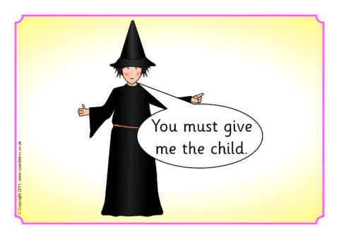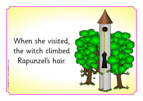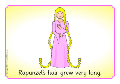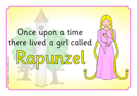 A set of A4-size printable visual aids for use when telling the story of Rapunzel. It includes pictures of the characters and large text to aid participation. Can also be printed for use on classroom displays or laminated for story sequencing activities.