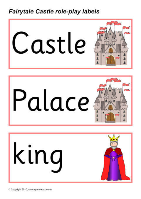 A useful set or printable resources for use in a Fairytale Castle role-play setting.  The pack includes a banner, labels with pictures, blank banquet menus writing templates, blank shields for coat of arms designs and invitations for the ball.