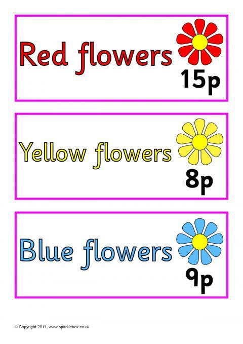 A set of printable signs, banners and labels for use in your Flower Shop/Florists role-play area.