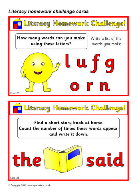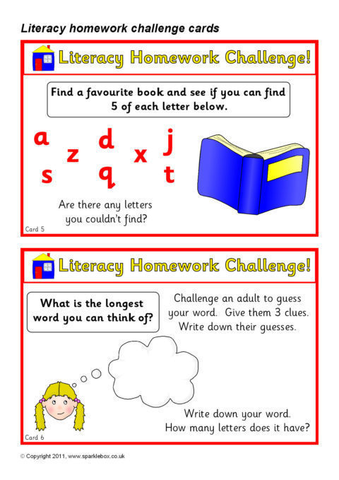 Literacy Homework Challenge Cards (SB6439) - SparkleBox