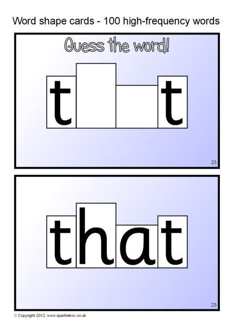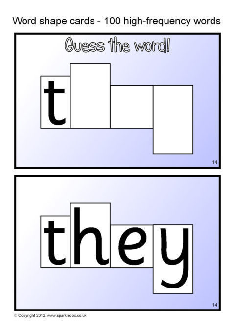 An activity where children try and guess the high-frequency words based on their shape. Includes letter tiles for pupils to lay above the spaces to help work out the words if needed.
