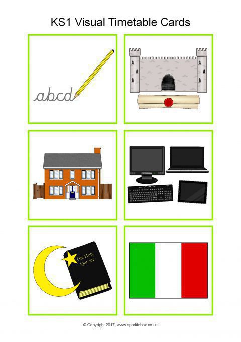 A picture-only version of our popular visual timetable resource. Includes a colourful set of JPG images featuring all of the major activities, subjects and areas of learning covered in Reception and Key Stage One.