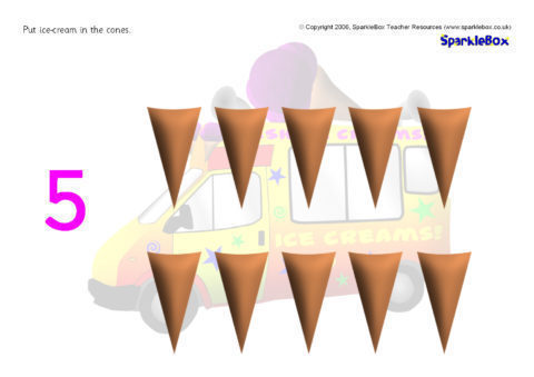 A second set of printable playdough mats which you can be laminated. Children read the numbers and make balls for the juggling clown, arms for the alien, fish for the sea, ice-cream for the cones and candles for the cake.