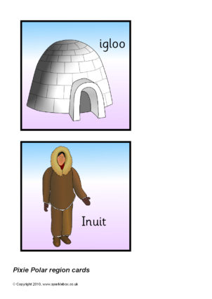 A set of printable cards (11cm by 11cm size) featuring things associated with the Polar regions
