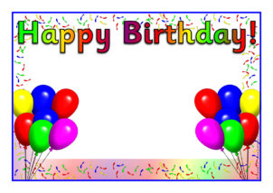 A set of themed posters with the text, ‘Happy Birthday’ and space to enter the child’s name
