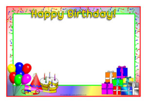 Printable A4 page borders with a ‘Happy Birthday’ theme (portrait and landscape)