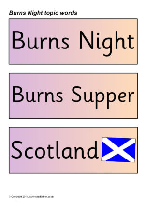 Printable word and picture cards linked to the Scottish celebration of Burns Night