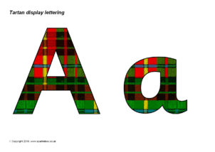 A PDF document with the 26 alphabet letters (upper and lowercase) with a tartan pattern effect