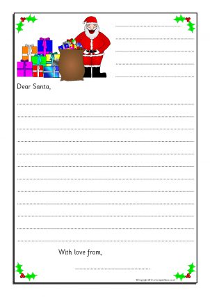 Simple letters to Santa writing frames with lines for address, the letter and closing farewell