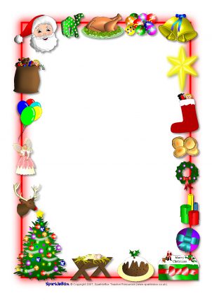 An additional set of colourful 5 printable portrait borders linked to Christmas