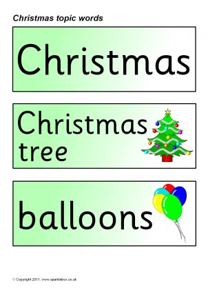 A printable word mat featuring words and pictures from the Christian Nativity story