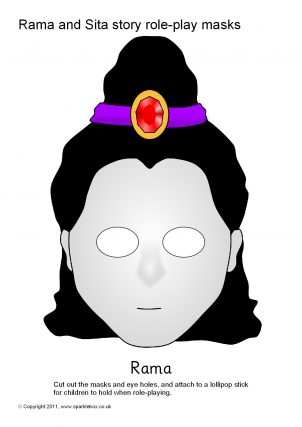 A fun set of black and white role-play masks for telling the Hindu story of ‘Rama and Sita’