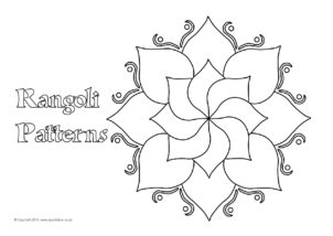 A set of 10 simple rangoli patterns that can be used for colouring or as templates