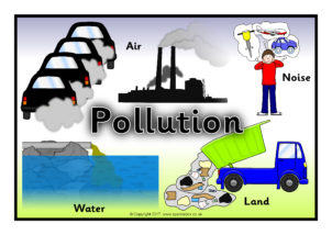 A set of posters showing various types of air, land, water and noise pollution as well as examples of ways to combat them