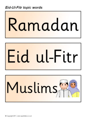 Eid-Ul-Fitr Topic Word Cards (SB1738) A useful printable set of 18 words, some with pictures, linked to the Islamic festival of Eid ul-Fitr