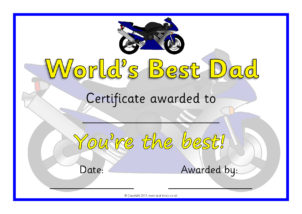 Printable certificates for children to present to their dad or guardian on Father’s Day