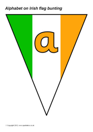 The lowercase alphabet letters presented on printable Irish flag bunting