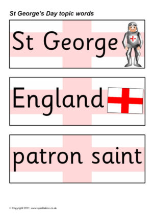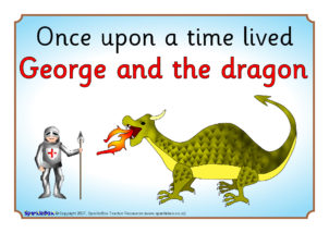 A set of A4-size printable visual aids for use when telling the story of St George and the Dragon