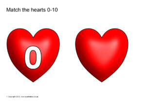 A printable activity where children match the numbered hearts to the hearts pierced by Cupid’s arrows