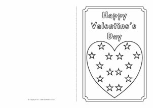 A set of 10 simple Valentine’s Day card designs that can be printed on card for children to colour and decorate