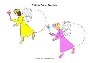Editable templates for Microsoft Word that enable you to add text to pink and yellow fairies