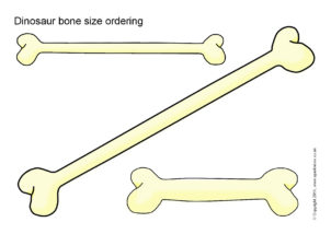 A set of different-sized dinosaur bones that can be cut out and used for size ordering activities