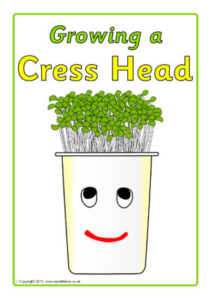 A set of instructions posters showing how to make and grow a yogurt pot cress head character