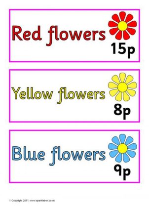A set of printable signs, banners and labels for use in your Flower Shop/Florists role-play area