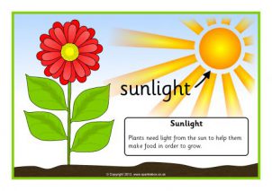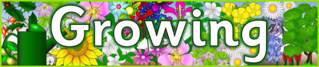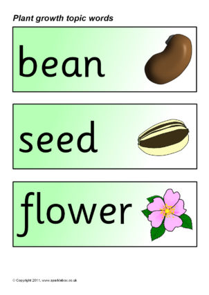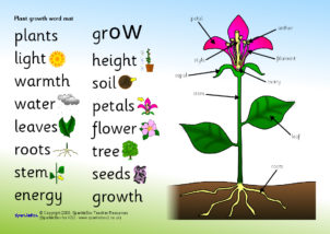A simple word mat featuring words connected with plant growth, including a labelled diagram of a flowering plant