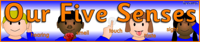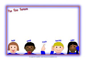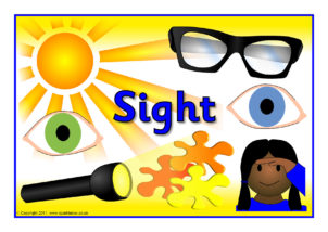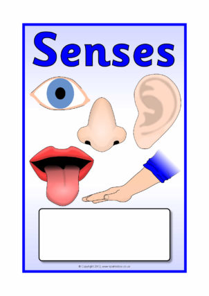 A set of posters showing things associated with each of the five senses