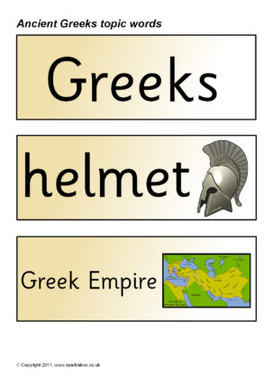 A useful set of printable cards featuring words and pictures relating to the ancient Greeks