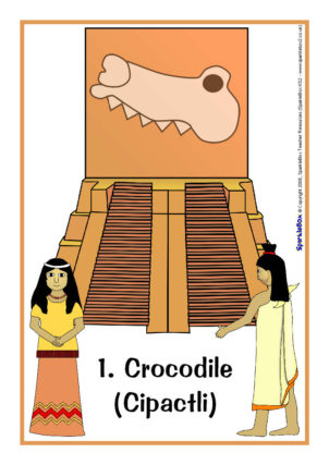 A set of posters featuring Aztec hieroglyphics for the 20 different days of the month