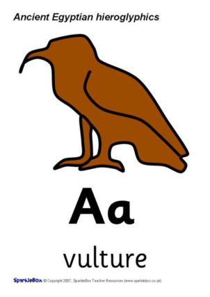A fantastic set of A4-sized posters featuring Egyptian hieroglyphics for alphabet letters A-Z as well as numbers