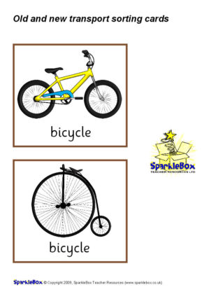 A set of printable cards featuring old and new transportation for sorting activities and topic discussion