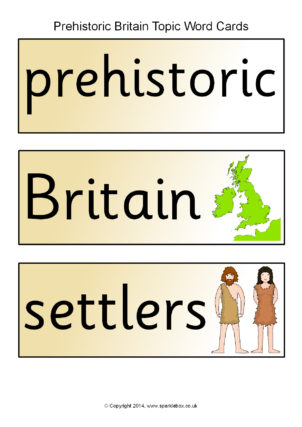 A useful set of printable word and picture cards featuring items related to prehistoric Britain