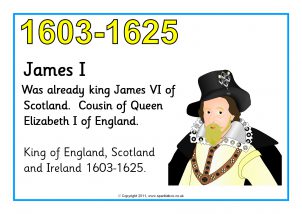 A set of printable posters featuring British monarchs from the House of Stuart and the dates of their reign