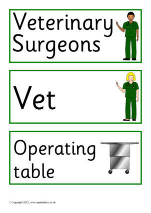 A useful set of resources for a classroom Animal Rescue Centre role-play area