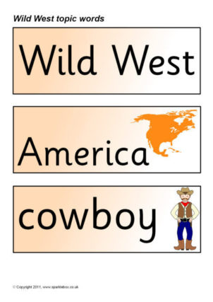 Printable word and picture cards linked to the old Wild West in America