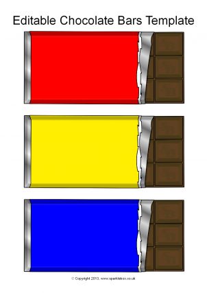 Microsoft Word templates that enable you to add text to chocolate bars with coloured wrappers
