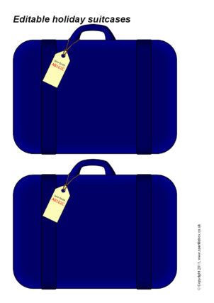 Microsoft Word templates that enable you to add your own text to different coloured holiday suitcases