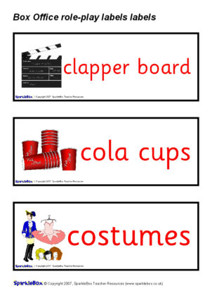 A set of 18 re-sizable label images (JPG) which can be used in your Box Office role-play area