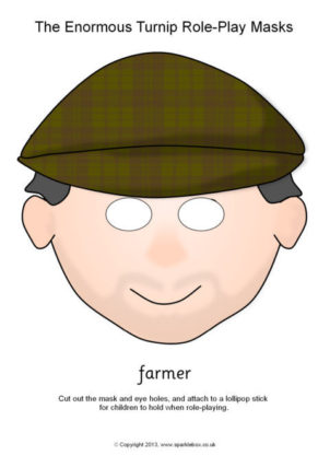 A set of printable cut-out character masks for role-playing the story of The Enormous Turnip