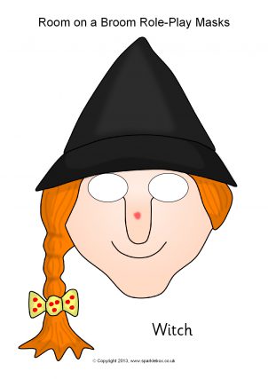 Simple printable masks featuring the characters from the story Room on the Broom by Julia Donaldson and Axel Scheffler