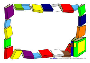 Two editable A4 page borders (for Microsoft Word) featuring a book theme