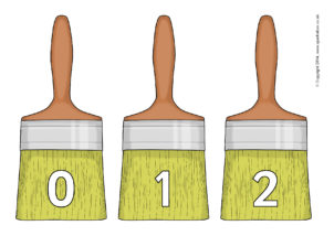 The numbers from 0 to 100 presented on large decorators’ paintbrushes