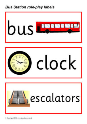 A pack with signs, labels, banners and other resources to help you create a stimulating and fun Bus Station role-play area
