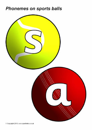 A set of printable sports balls featuring the phonemes as specified in the DfES ‘Letters and Sounds’ publication