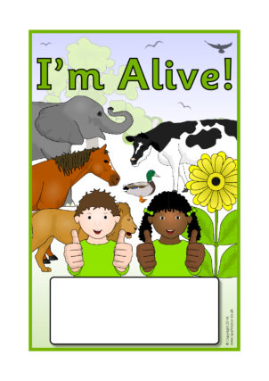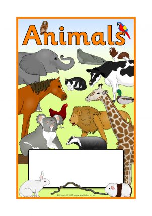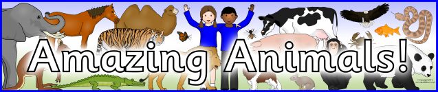 A printable banner with the title ‘Amazing Animals!’, featuring a selection of different kinds of animals, including humans