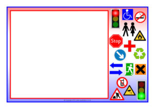A group of simple printable sheets where children can design and colour their own road signs